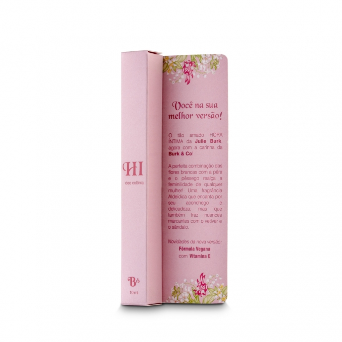 Delicado, feminino e cativante! O tão amado perfume da Julie Burk, está de volta, e agora com a carinha da Burk & Co. Durante os anos 80, foram realizados inúmeros testes e estudos - em parceria com uma casa de fragrância francesa - para chegar na fórmula perfeita do perfume perfeito. Em 1986, a deo colônia Hora Íntima é lançada, conquistando milhares de clientes desde a primeira borrifada, com uma fragrância verdadeiramente irresistível, exclusiva e insubstituível.